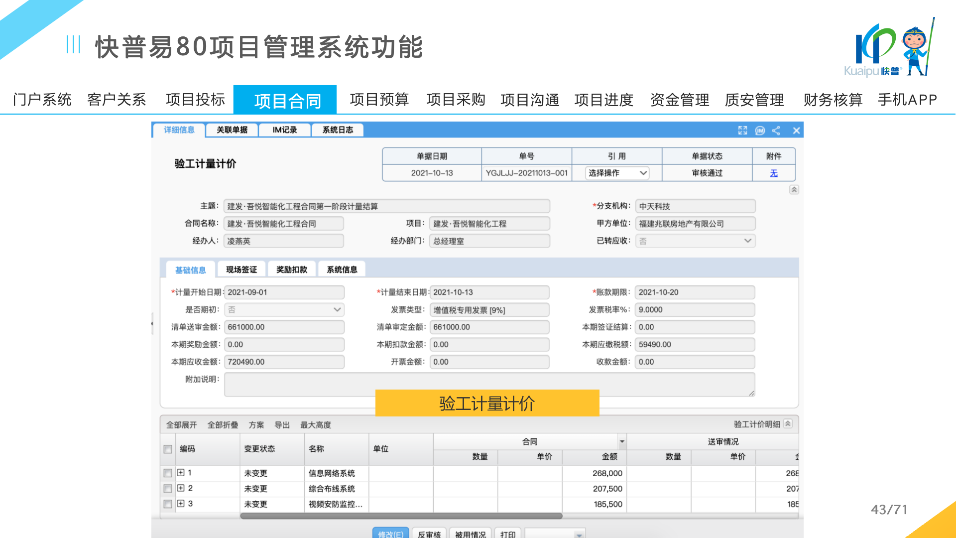 快普易80以項目管理為核心,通過“四控、四管、一協(xié)調(diào)”方式,對項目進(jìn)度、成本、資金、質(zhì)量安全進(jìn)行全面控制,實現(xiàn)投標(biāo)管理、合同管理、物資管理、預(yù)算管理等項目全生命周期項目的數(shù)字化管理,實現(xiàn)資源合理配置、保障良好的項目效益。